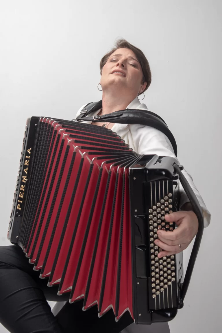 Marcia Müller comenzó con la guitarra y el canto. Luego llegó al acordeón y la combinación de estos tres mundos. Intuitiva, escolástica, observadora de su entorno. Se ha ido construyendo con la experiencia del andar, junto a otros y otras artistas. Su observación la ha hecho encontrar a sus maestros y maestras, no solo del arte, sino también de la vida, que dan sentido a su esencia.